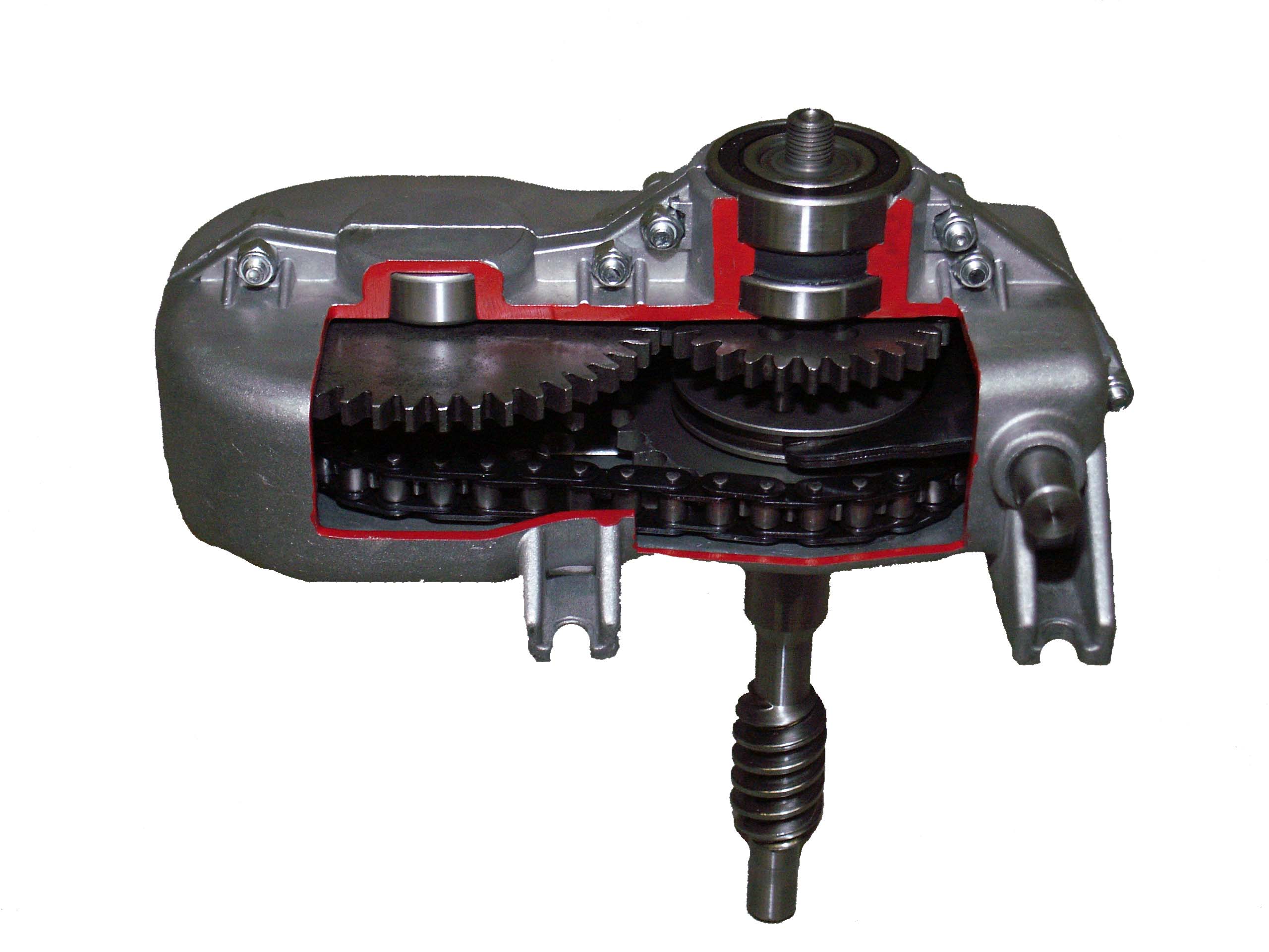 Radantrieb über Schneckengetriebe im Ölbad