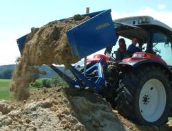 Durch den doppelwirkenden Teleskopzylinder, der sich im Dreipunktanbau befindet, ist eine leichte und flache Bauweise bei gleichzeitiger Hubkrafterhöhung möglich. Somit sind auch die schwersten Lasten kein Problem. Außerdem ist durch die offene Rahmenbauweise ein Verstopfen zwischen Rahmen und Schaufelboden ausgeschlossen. Sollte einmal die Schaufeltiefe nicht ausreichen, so wird einfach die Bordwand nach hinten geklappt und die Ladefläche um ca. 50 cm verlängert.